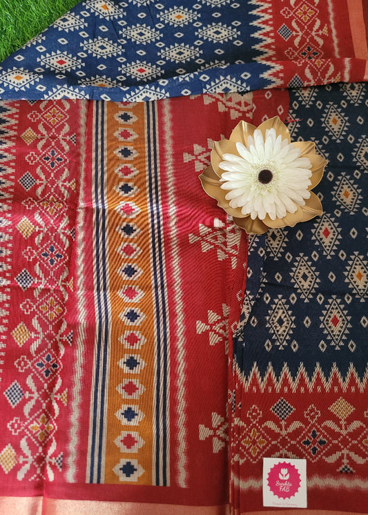 Navy Blue And Red Soft Cotton Viscose Saree-Casual