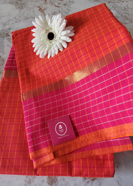 Orange And Fuchsia Pink Mangalgiri Cotton Saree- Andhra