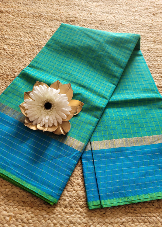 Teal Green And Blue Mangalgiri Cotton Saree- Andhra