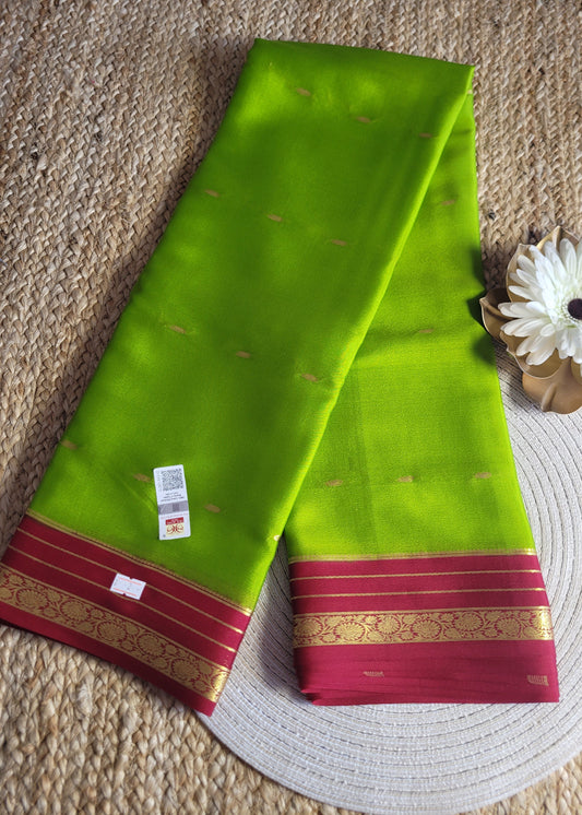 Green And Maroon Pure Mysore Silk Saree - Karnataka