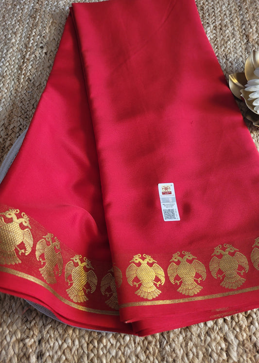 Bright Red Jal Design Dupion Silk Saree- Banaras