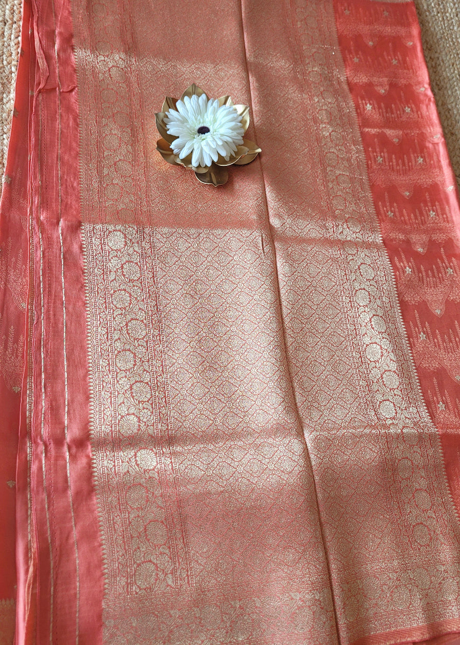 Peach Colour Mushru Silk Saree- Banaras