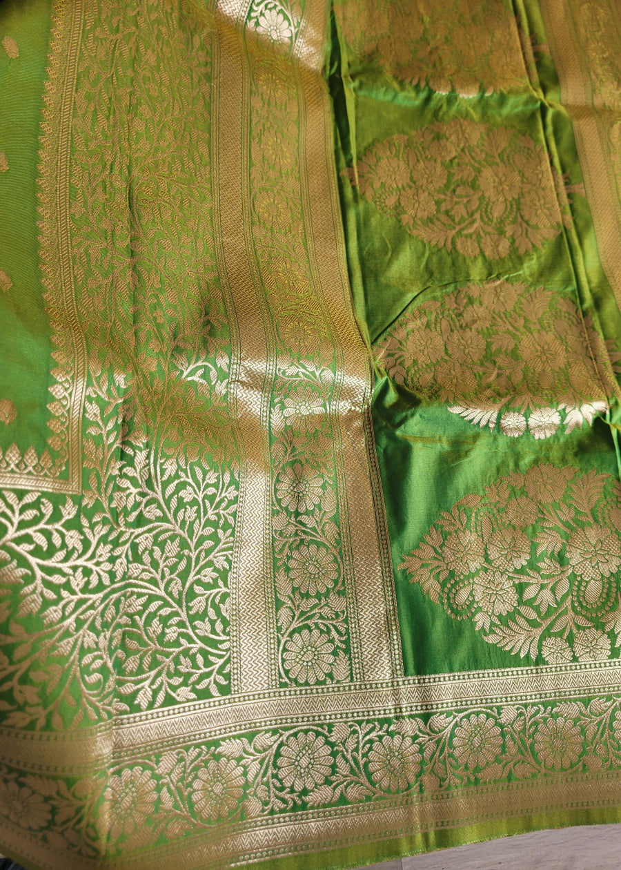 Mehandi green And Parrot Green Dual Toned Semi Silk Saree-Banaras