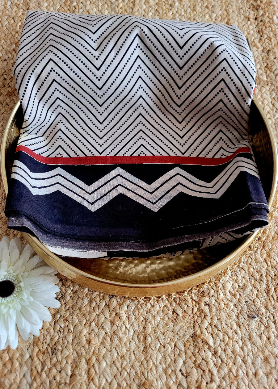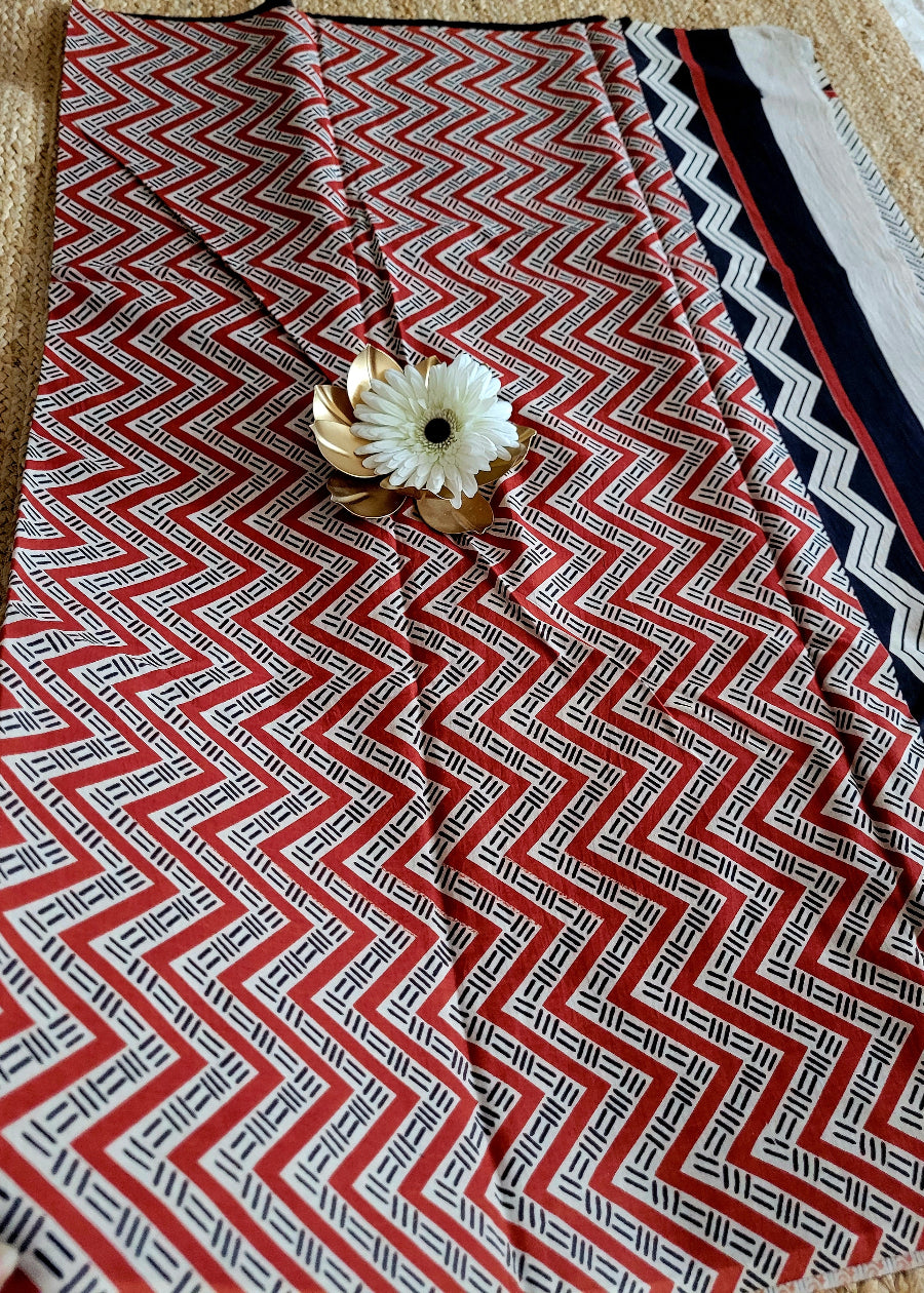 Refresh your wardrobe with the Jaipur Cotton Saree in attractive Beige, Black and Red . Crafted from breathable cotton, this saree ensures comfort while showcasing a fresh, elegant color combination and a trendy design. Perfect for both casual outings and as a formal wear, its timeless design adds a graceful touch to your style. Embrace tradition with a modern twist in this comfortable and charming saree.