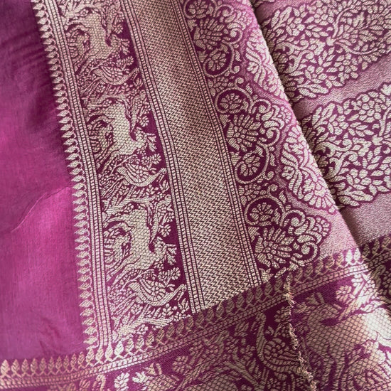 Elevate your ethnic wardrobe with this stunning Maroon Dola silk saree. Crafted from a luxurious soft silk, with hand block prints, this saree offers the perfect balance of comfort and elegance. The vibrant Maroon hue paired with striking Violet accents creates a timeless look that works beautifully for festivals, celebrations, and special occasions.
