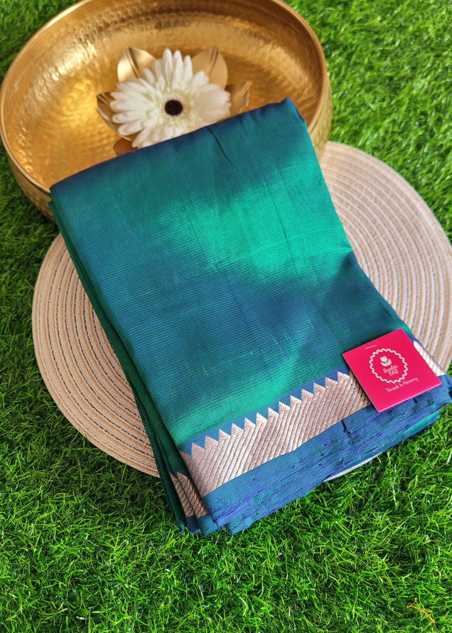 Rama Green And Blue Mangalgiri Silk Saree- Andhra