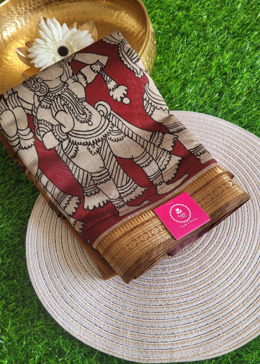 Deep Mustard And Maroon Kalamkari Semi Silk Saree - Andhra