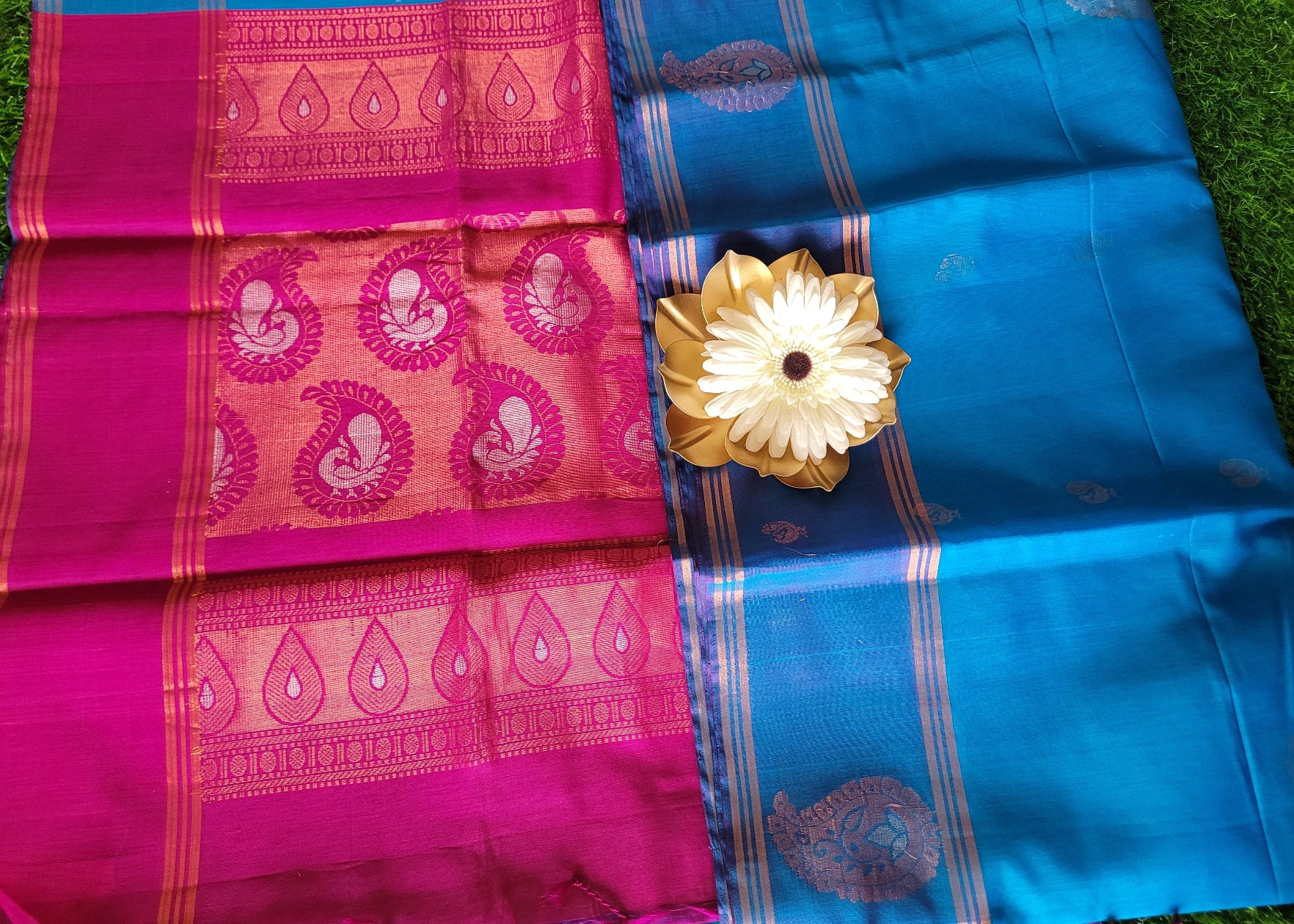 Copper SulphateBlue And Majenta Kora silk Saree- TN