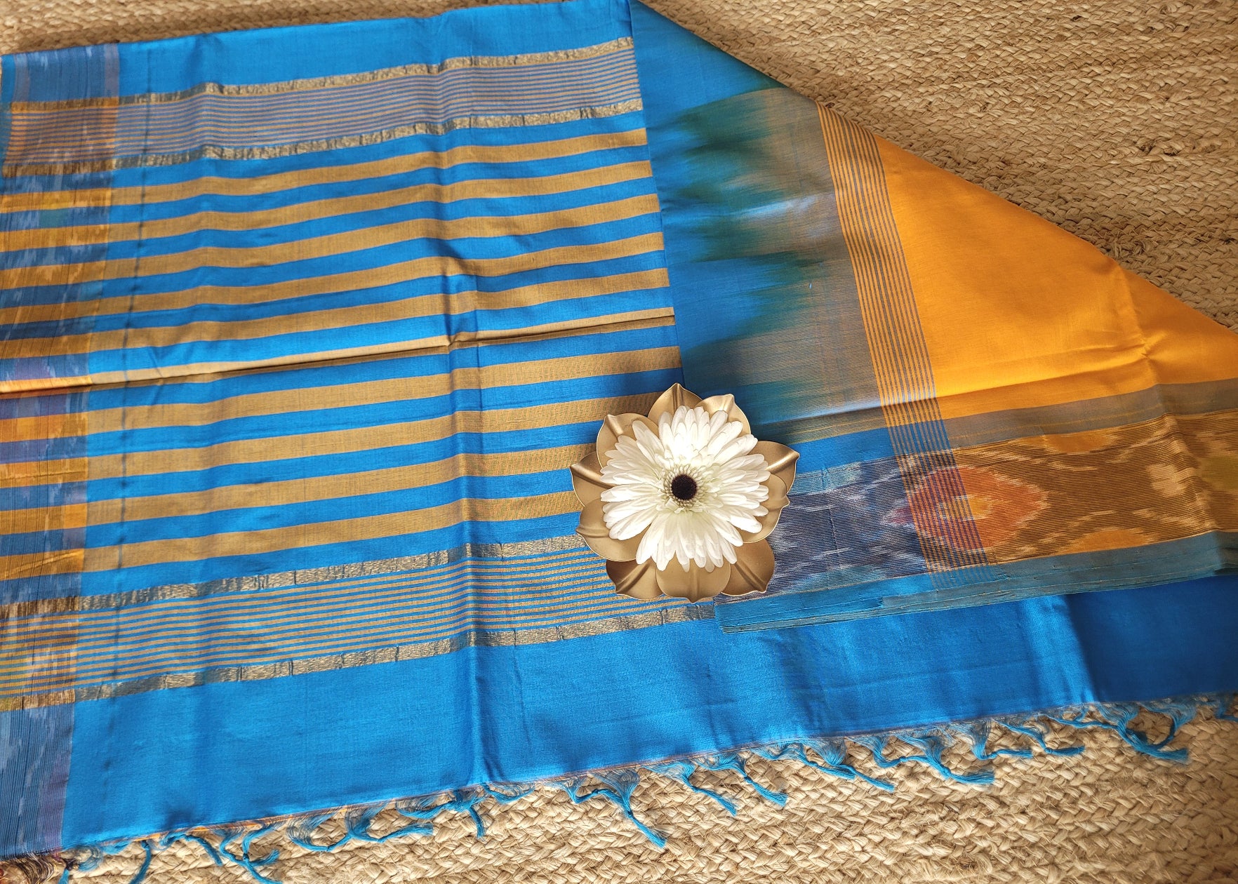 Turmeric Yellow And Blue Silk Cotton Saree- TN